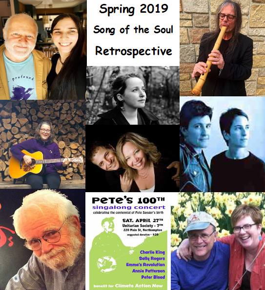 Song of the Soul broadcast retrospective of a simpler, less COVID-19, time, one year ago, in 2019, with Victoria Shoemaker (Bewitching), Kora Feder (Painting the Sky with Music), Peter Phippen (Living Music, Sacred Flute), Ira Levin of The Levins (Harmonizing With Lamed Vavniks, Hafiz, & The Gita), Sally Rogers (Happy 100th Birthday Pete Seeger), Pat Humphries of Emma's Revolution (Pete Seeger's Last Songs), Charlie King (Pete Seeger's Last Songs), and Annie Patterson (Pete Seeger's Last Songs).