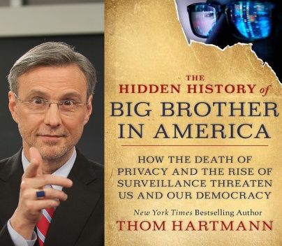 Thom Hartmann's completely articulate voice & extensive knowledge & insights all combine to insure his place as the USA's #1 progressive talk show host. His more than 30 books are equally compelling, and today we talk with Thom about his latest, The Hidden one of the most articulate voices of progressive radio in the USA, and he's a compelling writer as well. His most recent book is The Hidden History of Big Brother In America: How the Death of Privacy and the Rise of Surveillance Threaten Us and Our Democracy and it combines history, current events, & clear-sighted analysis or the way forward.