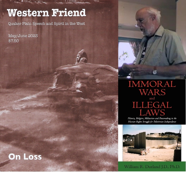 There was an article by Bill Durland in the May/June 2023 issue of Western Friend called Martyrs for Conscience's Sake (and there is also a podcast of a visit with Bill) which provides a very short history of those martyred as they “spoke truth to power”. We visit with Bill & Genie Durland about the article, about the violence in Israel/Palestine, and about the 10 plays they have written on activist issues and which can be ordered from Bill & Genie by email at durlandwe@gmail.com. Bill is an attorney, he served in the Virginia House of Delegates, and Bill and Genie have served with the Center on Law & Pacifism, Pendle Hill Retreat Center, Christian Peacemaker Teams, and in other ways and with other groups.